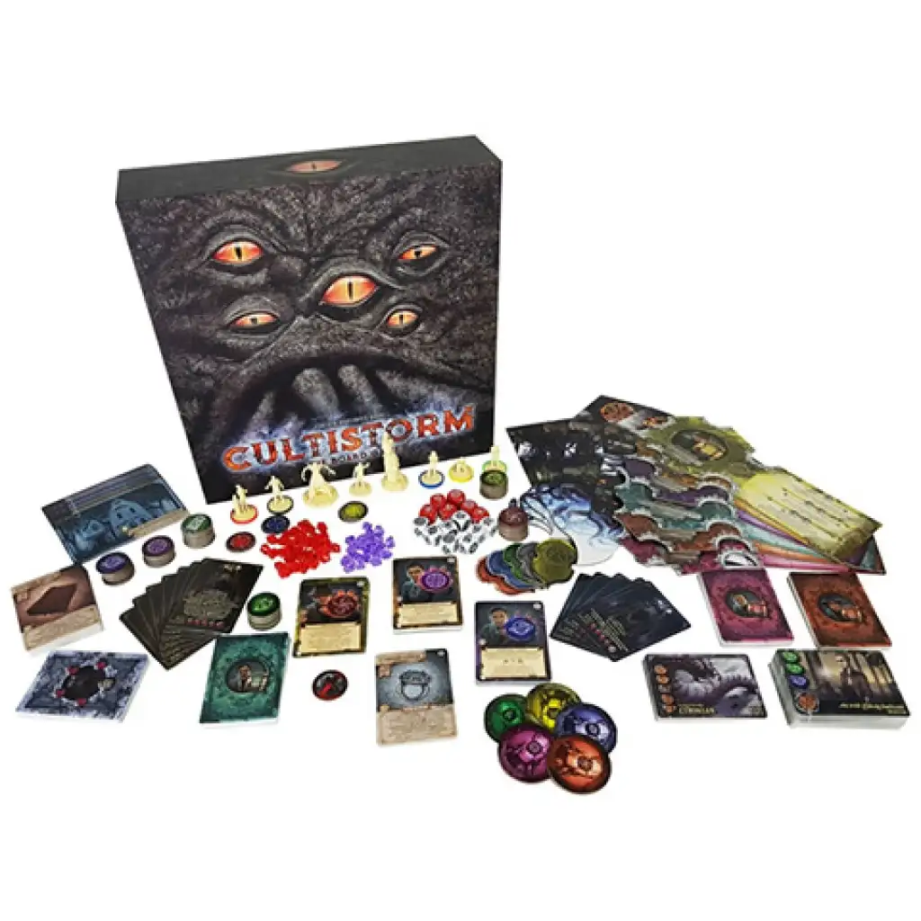 Cultistorm je kooperativní desková hra, ve které hráči ztvárňují detektivy speciálního oddělení zřízeného společně Úřadem pro vyšetřování státu Massachusetts a Miskatonickou univerzitou v Americe na počátku 20. století. Na území Arkhamského kraje se objevuje množství děsivě znetvořených, neznámých lidí s cílem přivolat své pány z kosmického prostoru a času, Nezměrné Starce, prostřednictvím temných rituálů. Společným cílem detektivů je spoléhat se na schopnosti jeden druhého, aby potlačili kultisty shromažďující se na místech a zabránili jim v dostatečném počtu přivolat Nezměrné Starce. Pokud by se to přece jen stalo, musí vyhnat všechny objevené prastaré hrůzy, než vstoupí do našeho světa a přinesou konec světa, jak ho známe. Během hry mohou detektivové hledat užitečné předměty, žádat o pomoc místní obyvatele a získávat dávno zapomenuté znalosti. Tím získají řadu možností, jak úspěšně podpořit své kolegy. Neustálá komunikace a strategické myšlení jsou nezbytné pro porážku kultistů a zajištění míst! Tato verze hry obsahuje také exkluzivní obsah pro Kickstarter.