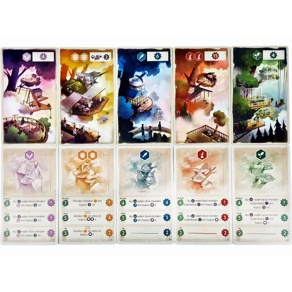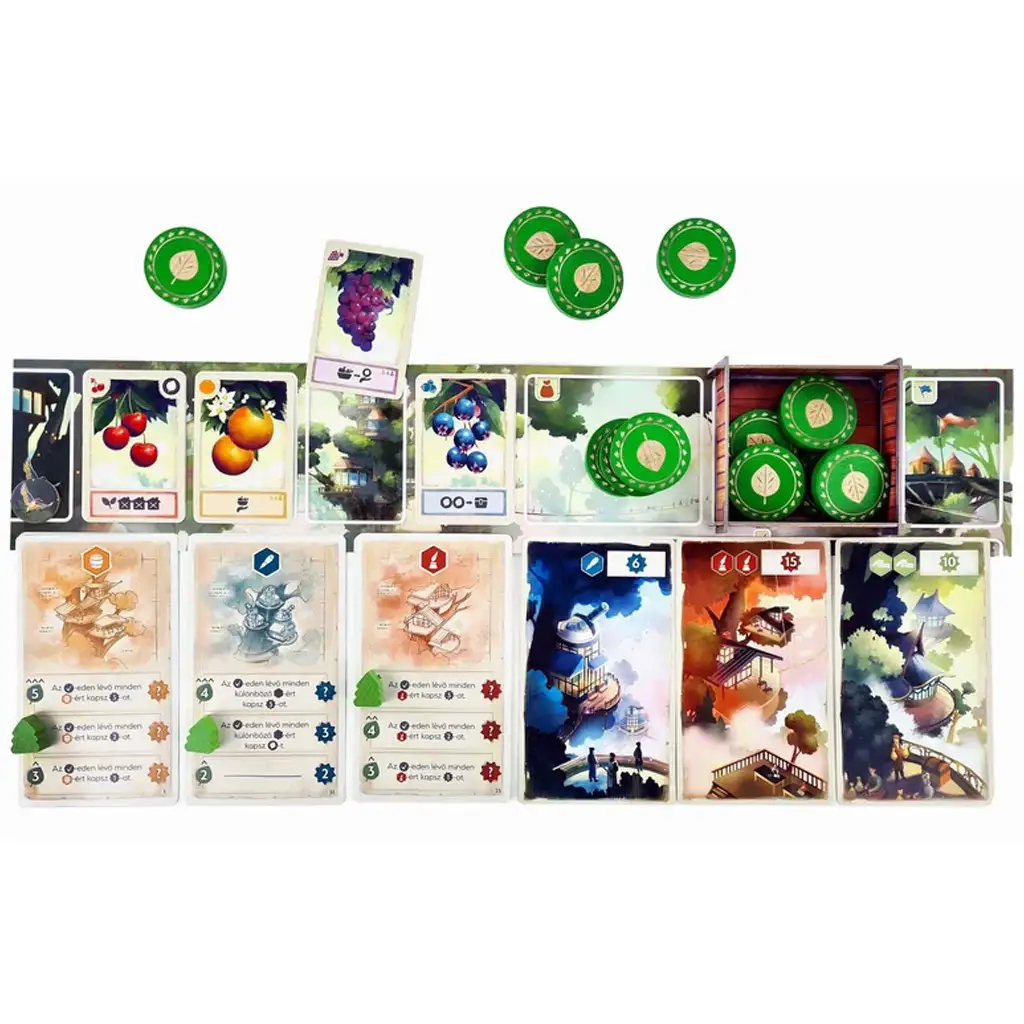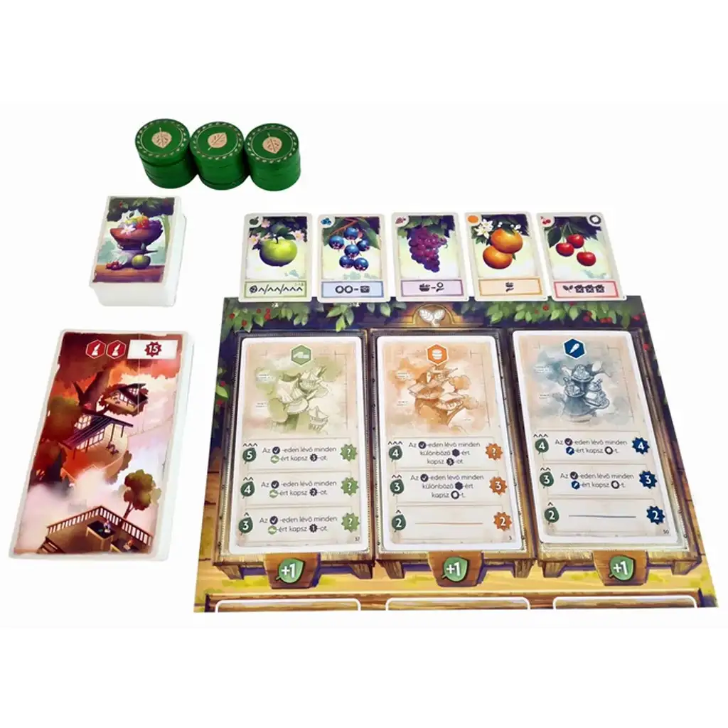 Lidé stromů je rodinná desková hra v maďarštině, kde hráči jako členové „lidí stromů“ soutěží o stavbu nejvýnosnějších budov. Během hry obchodujete s různými druhy ovoce, abyste získali peníze, které můžete použít na rozvoj svých budov. Načasování prodeje je klíčové, protože tržní hodnota ovoce je určována aktuálními zásobami. Čím žádanější je ovoce, tím více peněz stojí, takže strategie a sledování trhu jsou nezbytné pro úspěch.