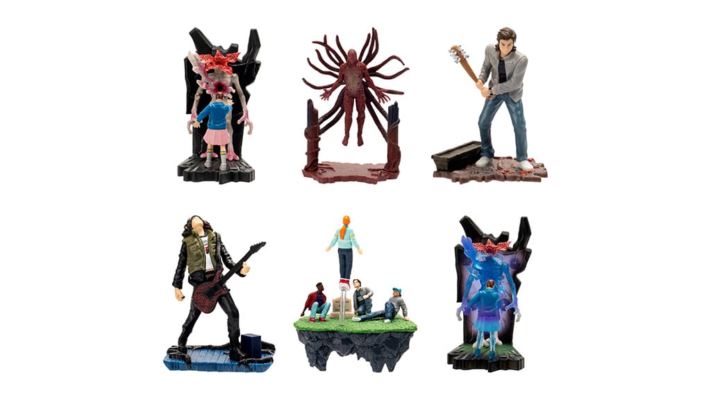 Pro další překvapení se také vyplatí dávat pozor, protože série Mini Okamžiky připomíná nejpamátnější scény 1.–4. řady. Každá 3palcová figurka věrně a realisticky zobrazuje ikonický okamžik ze seriálu, takže rodiny mohou mít pocit, jako by znovu prožívaly své oblíbené scény. Tyto figurky potěší nejen sběratele, ale všechny fanoušky a nabízejí skvělou příležitost k oživení společných vzpomínek.V nabídce najdete několik druhů akčních figurek. Mezi velmi detailně kidolgozott, 15 cm vysokými akčními figurkami jsou Eleven, Demogorgon, Dustin, Will a Mike, ke kterým patří různé doplňky a mají více než 33 pohyblivých kloubů. Mikeova figurka je k dispozici s kolem nebo v bojovém oblečení. Kromě toho jsou k dostání i 10 cm vysoké figurky v balení po dvou (19,99 dolarů); v těchto baleních tvoří dvojici Eleven s Jimem Hopperem a Dustin se Stevem. Tyto sady jsou k zakoupení výhradně v obchodech Target. Detailní zpracování figurek a množství doplňků umožňuje fanouškům znovu prožít své oblíbené scény nebo vymýšlet vlastní příběhy s postavami.