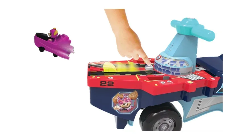 Toto vozidlo má dva proudové motory, vzletovou a přistávací dráhu, startér a tlačítka umístěná na řídítkách, která přehrávají zvuky a melodii z oblíbeného seriálu Tlapková patrola, zatímco děti jedou.