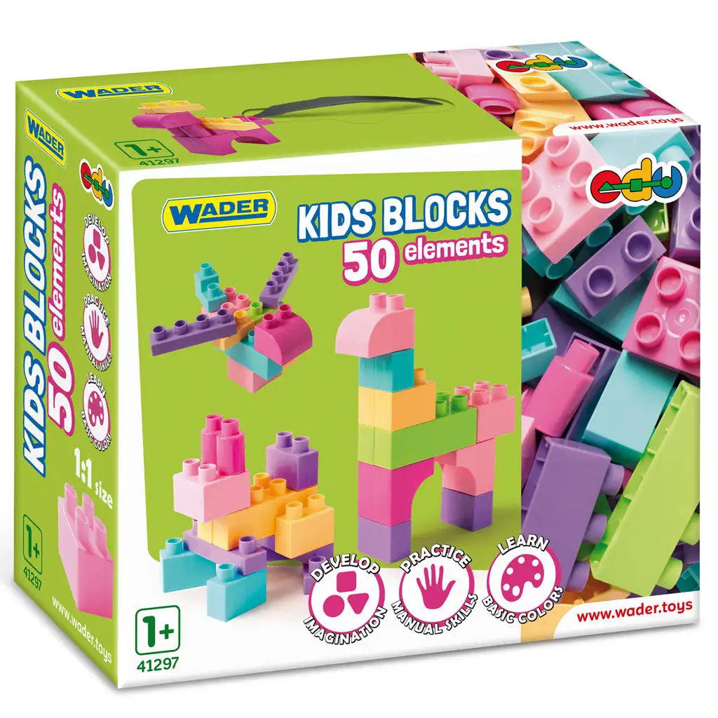 V tomto mimořádně kreativním setu čeká na děti padesát kusů stavebních bloků v pastelových barvách, aby vytvořily jedinečné a vzrušující konstrukce. Stavební bloky Kids Blocks od společnosti Wader byly pečlivě navrženy speciálně pro nejmladší generace, takže už jednoleté děti mohou snadno manipulovat s těmito bloky a s radostí s nimi stavět. Výjimečně velké, čtyři centimetry vysoké díly nejsou jen bezpečné během hry, ale také zabraňují nebezpečí spolknutí. Kromě toho jsou bloky vyrobeny z materiálů vynikající kvality, čímž zaručují bezpečný a trvanlivý zážitek z hry.