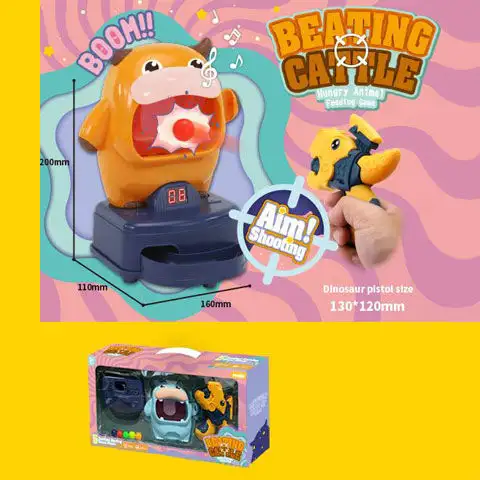 Tato střelecká hra zaručeně sklidí obrovský úspěch mezi malými kluky, protože žádný její prvek není zrovna běžný. Zbraň tvoří pistole ve tvaru dinosaura, zatímco jako terč slouží obrovská otevřená ústa krávy. Úkol je jednoduchý! Vlož střelu do dinosauří pistole, zapni terč, aby digitální displej počítal zásahy za tebe, a snaž se zasáhnout cíl co nejvícekrát. Jako každá střelecká hra, i tato skvěle rozvíjí koordinaci oko-ruka u dětí, a navíc je to skvělá zábava.