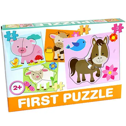 Děti mohou z jednotlivých dílků skládačky vyložit prase, krávu, jehně nebo osla, jejichž zvláštností je, že se skládají pouze z několika málo dílků. V kartonové krabici se nacházejí pevné dílky, které jsou živě barevné a jejich používáním se rozvíjí pozorovací schopnosti, logika a jemná motorika dětí. Slož si skládačku domácích zvířat a dozvíš se o nich co nejvíce!
