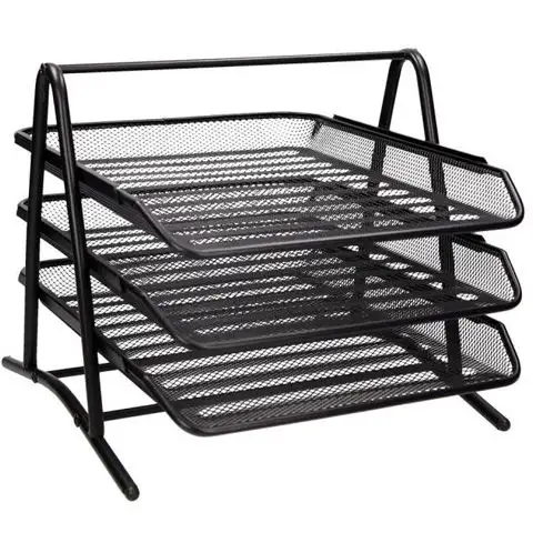 Duch: Černý kovový síťovaný třípatrový dokumentový podnosDuch: Černý kovový síťovaný třípatrový dokumentový podnos