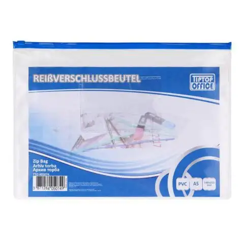 Tento fantastický PVC sáček nabízí skvělou možnost, jak přehledně a snadno uspořádat naše kancelářské dokumenty nebo potřeby. Sáček je ve formátu A5, vybavený plastovým zipem a otevírá se na dlouhé straně. Průhledný design usnadňuje rychlé a snadné nalezení toho, co právě potřebujeme. Sáček se pohodlně vejde i do tašky.