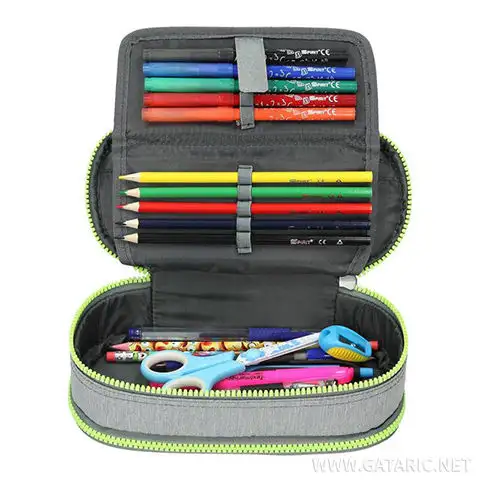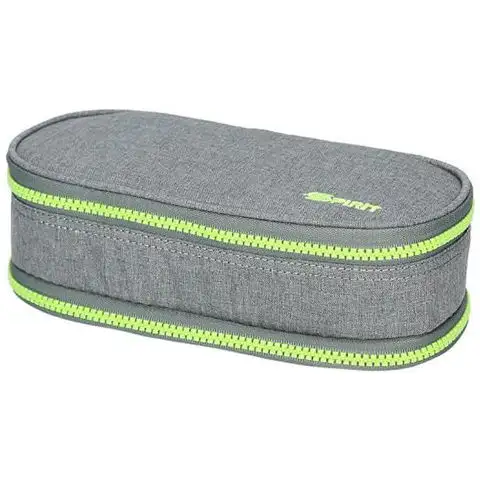Doplňte školní potřeby svého dítěte o vynikající kvality penál Spirit, který má světle šedou základní barvu s neonovými zipy a poskytuje jeho uživateli stylový vzhled. Oválný penál umožňuje bezpečné a dobře organizované nošení důležitých psacích potřeb během školních dnů. Díky patrovému designu se dovnitř vejde spousta psacích potřeb, a díky délce 23 cm se do něj vejde i pravítko nebo kružítko. Uvnitř penálu se také nacházejí různé gumové upevňovací prvky, ve kterých lze uchovávat barevné tužky, fixy a další psací potřeby.