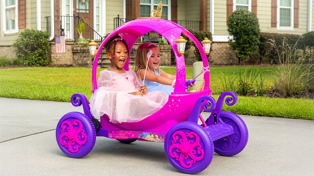 24voltová Disney Princezny kočár od Dynacraft je růžové a fialové, třpytivé autíčko ve tvaru kočáru, které je ozdobeno jemnými dekoracemi, dekorativními lucernami a odnímatelnou přední korunou – ideální pro hraní rolí a splnění princeznovských snů. Díky dvoumístnému provedení se v něm mohou společně svézt dvě malé princezny od 3 let, takže společná dobrodružství budou ještě vzrušující. 24voltová baterie a dva motory zajišťují až 45 minut kouzelné jízdy maximální rychlostí 7 km/h. Tento kočár nejen podněcuje dětskou fantazii, ale je také bezpečnou a spolehlivou volbou pro rodiče, protože kvalitní materiály a detailní zpracování zaručují odolnost a dlouhodobý zážitek.