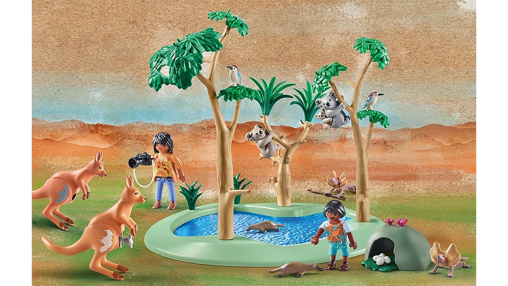 Tato herní sada zve děti na dobrodružství plné zvířat v australské divočině. Sada obsahuje dvě minifigurky, klokany, koaly, ještěry s límcem a další roztomilá australská divoká zvířata, která se shromažďují kolem napajedla. Je vyrobena z více než 80 % recyklovaného plastu, takže děti mohou pomoci zachránit Zemi, zatímco objevují její zázraky!