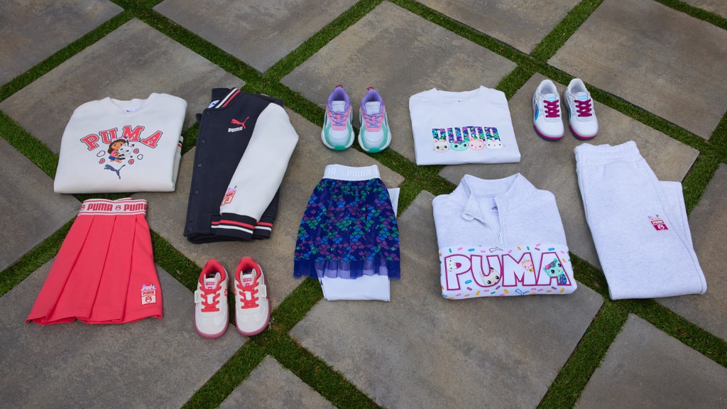 Pro děti, které si nemohou vybrat oblíbenou postavu, se PUMA postará o ně (v měkkém, svetr materiálu). Jedna z PUMA x Gabi domeček pro panenky 2dílná sada obsahuje obrázky MerCat, jejích přátel a vzor pokrytý šupinami. Sada obsahuje sukni a legíny, které představují podobný šupinový vzor.