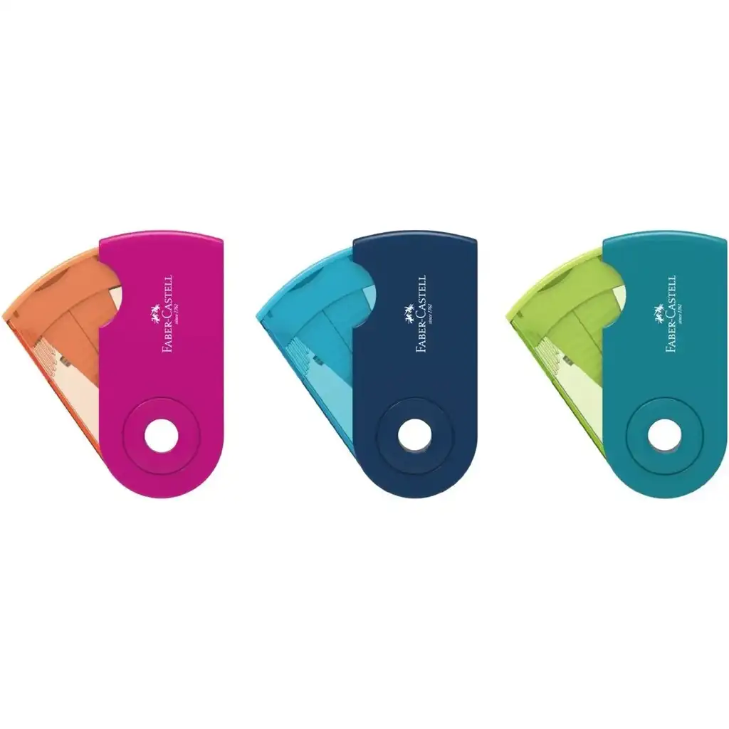 Faber-Castell Sleeve dvojité ořezávátko je praktický, stylový a spolehlivý nástroj, který je perfektní volbou pro každodenní školní použití. Díky modernímu designu a živým barvám ho děti nejen rády používají, ale i s radostí ukládají do penálu nebo školní tašky. Ergonomický tvar ořezávátka zajišťuje pohodlné držení, takže jej bez problémů mohou používat i menší ruce.