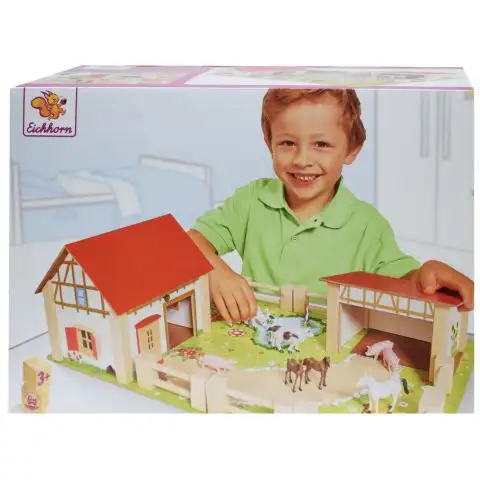 Válj do bláta s prasaty, veď koně do stáje v špatném počasí, nebo právě přinášej jídlo kůzlátkům! Na tvé farmě je spousta práce, která musí být udělána, aby zvířata v ničem netrpěla nedostatkem. Na farmě sestavitelné z dřevěných dílů si děti mohou hrát se známými domácími zvířaty na náročném hřišti nebo v dřevěných budovách. Farmu můžeš ohradit plotem, aby žádné zvíře neuteklo.