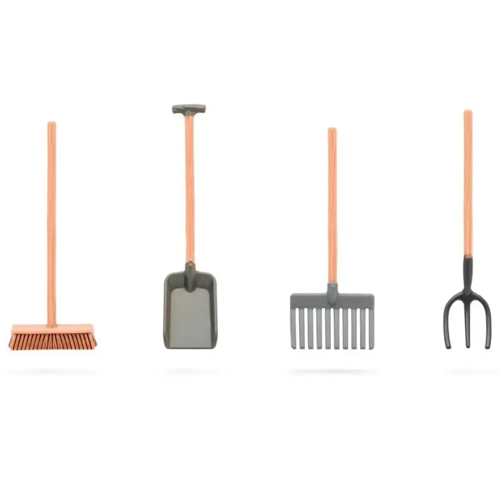 Mnoho doplňků, jako je kolečko, hrábě, kbelíky a balík sena