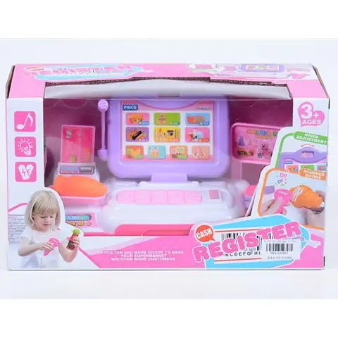 Pro své dítě si nyní můžete pořídit speciální pokladnu, která ho jistě zaujme. Pokladna je vyrobena v kombinaci fialové a bílé barvy, která vypadá skvěle, navíc na jejím displeji najdete barevné obrázky, které ji udělají ještě veselější. K pokladně patří čtečka čárových kódů, terminál pro platební karty a navíc je schopna světelných a zvukových efektů, což hru udělá ještě zvláštnější.