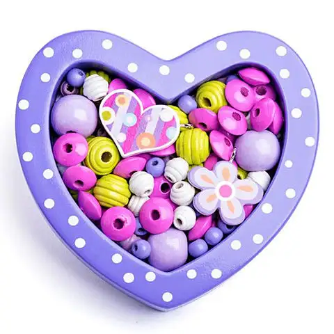 Chceš překvapit svou nejlepší kamarádku nádherným šperkem? Udělej si ho sama! Sada, která přichází v malém fialovém srdcovém boxu, obsahuje různobarevné a různě tvarované korálky, které si dívky mohou navléknout. Šperk můžete doplnit dvěma medailony ve tvaru srdce a květiny, které najdete v krabici. Bavte se kreativně a zároveň rozvíjejte svou zručnost s hračkou na navlékání korálků!