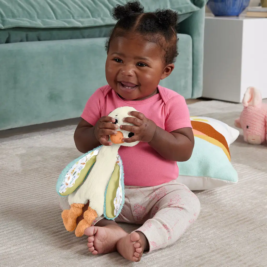 Hraní je také učení: Držení hračky rozvíjí jemnou motoriku a koordinaci oko-ruka, zatímco různé materiály a barvy rozvíjejí taktilní a vizuální smysly dětí.