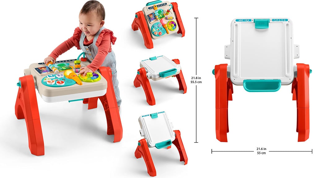 Laugh & Learn 4 v 1 Herní stolek a kreslicí tabule od Fisher-Price je jednou z těch vzácných hraček, které skutečně dokážou držet krok s vaším dítětem. Zpočátku funguje jako stolek na hraní v sedě, který poskytuje zábavu, poté jej lze přeměnit na stolek pro batolata, otevřený herní stolek a nakonec se může stát uměleckou kreslicí tabulí. Obsahuje více než 135 písniček, zvuků a frází, které jsou rozděleny do tří úrovní učení Smart Stages (Objevování, Povzbuzování, Představivost), takže nabízí spoustu možností pro dotýkání, otáčení, překlánění a společné zpívání. Tato hračka není jen zábavná, ale rozvíjí také jemnou motoriku, kreativitu a touhu po učení, přičemž roste spolu s vaším dítětem a v každé fázi vývoje přináší nové zážitky.