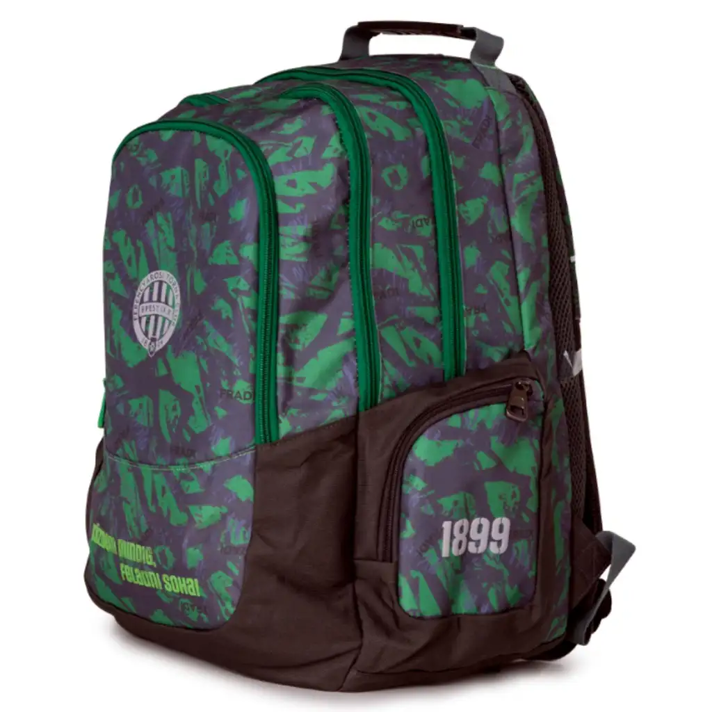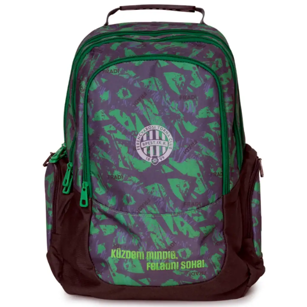 Střední školní batoh Fradi s maskovacím vzorem je ideální volbou pro starší školáky, kteří by hrdě reprezentovali svůj oblíbený tým i ve všední dny. Odvážný zeleno-černý design, nápis „Bojovat vždy, nikdy se nevzdávat!“ a znak Fradi dodávají batohu skutečně jedinečný styl. Díky rozměrům (47 x 40 x 18 cm) se do něj pohodlně vejde veškeré potřebné vybavení – učebnice, svačinový box, penál i notebook. Polstrované, ergonomické ramenní popruhy a prodyšná zadní konstrukce zajišťují pohodlí při celodenním nošení, i během nejrušnějších školních dnů.
