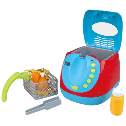 Bude hračka používat fritézu Playgo i pro ty nejmenší. Nejprve pomocí tlačítka open otevřete víko fritézy, poté stiskněte tlačítko označené symbolem jídla, které chcete smažit, poté vložte jídlo a stiskněte tlačítko start. Hračka je vybavena zpětným světelným signálem a vestavěným časovačem, takže když je jídlo hotové, fritéza se vypne. V sadě jsou také umístěny hračkové potraviny, které si děti mohou snadno vzít na talíř pomocí přiloženého kleště na jídlo.