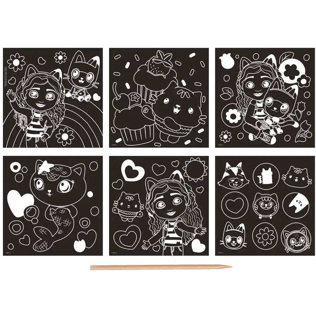 6 předkreslených stíracích obrázků s motivy Gábinina domečku