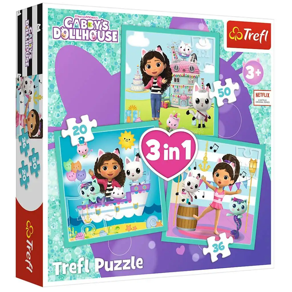 Gabiho panenkový dům: Aktivity 3 v 1 puzzle - TreflGabiho panenkový dům: Aktivity 3 v 1 puzzle - Trefl
