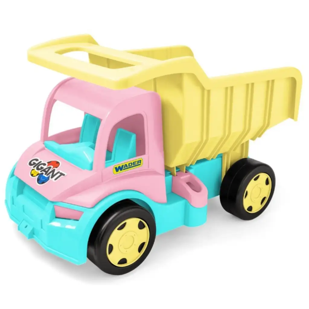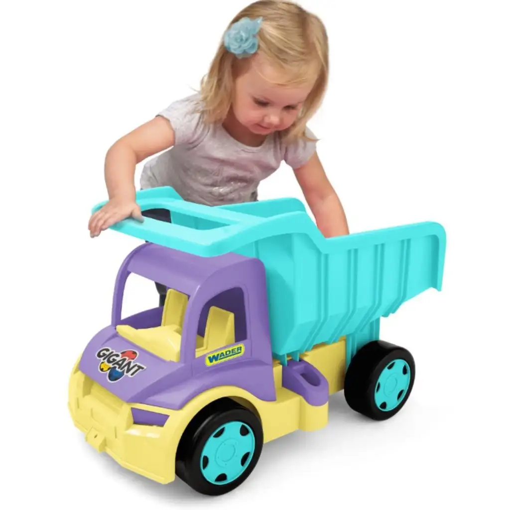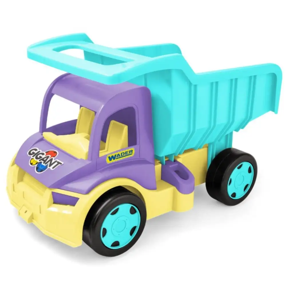 Obří sklápěčka Wader Gigant v lila-tyrkysové barvě se zaručeně stane oblíbeným hračkou vašeho dítěte! Toto stylové a zároveň veselé vozidlo je nejen odolné, ale díky nosnosti až 150 kg je také mimořádně silné. Díky sklápěcí korbě může vaše dítě snadno nakládat a vykládat náklad při hraní na pískovišti nebo doma. Velikost 55 cm je ideální pro pohodlné tlačení, zatímco se rozvíjejí dovednosti a fantazie vašeho dítěte. Obdarujte své dítě touto výjimečnou sklápěčkou!