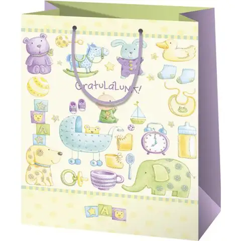 Tato speciální dárková taška s nápisem "Gratulujeme!" je skvělou volbou pro předávání dárků na oslavách očekávání dítěte. Dárkové tašky Cardex jsou vyrobeny z vynikající kvality, s pevnými provázkovými uchy a zesíleným dnem, aby bylo možné v nich bezpečně a snadno přepravovat i těžší dárky. Povrch tašky je laminovaný, což nejen chrání papírový materiál před znečištěním a vlhkostí, ale také zvýrazňuje a zkrášluje vzor na tašce.