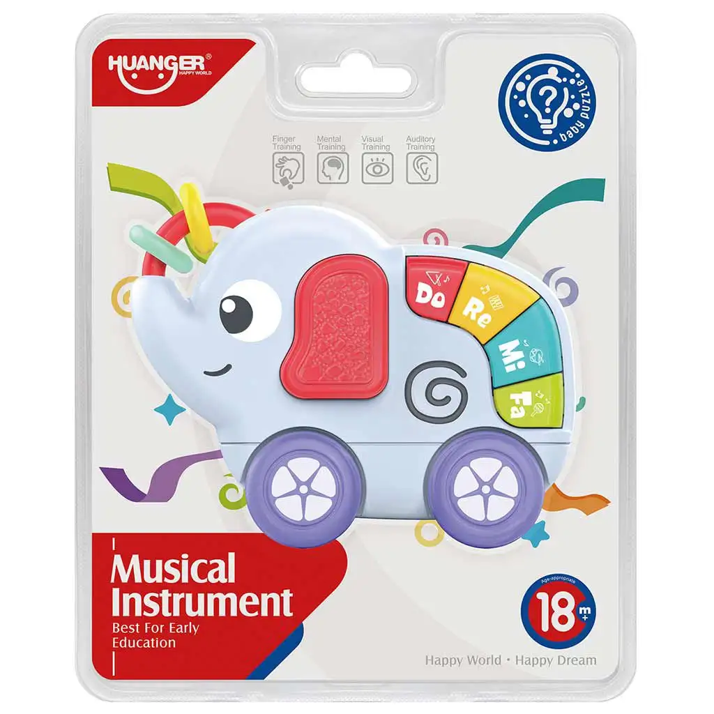 Stiskem tlačítek se děti nejen učí noty, ale také pochopí příčinné souvislosti, zatímco se zlepšuje jejich koordinace rukou a prstů. Texturované uši slona také stimulují hmatové vnímání, čímž rozšiřují škálu senzorických zážitků.