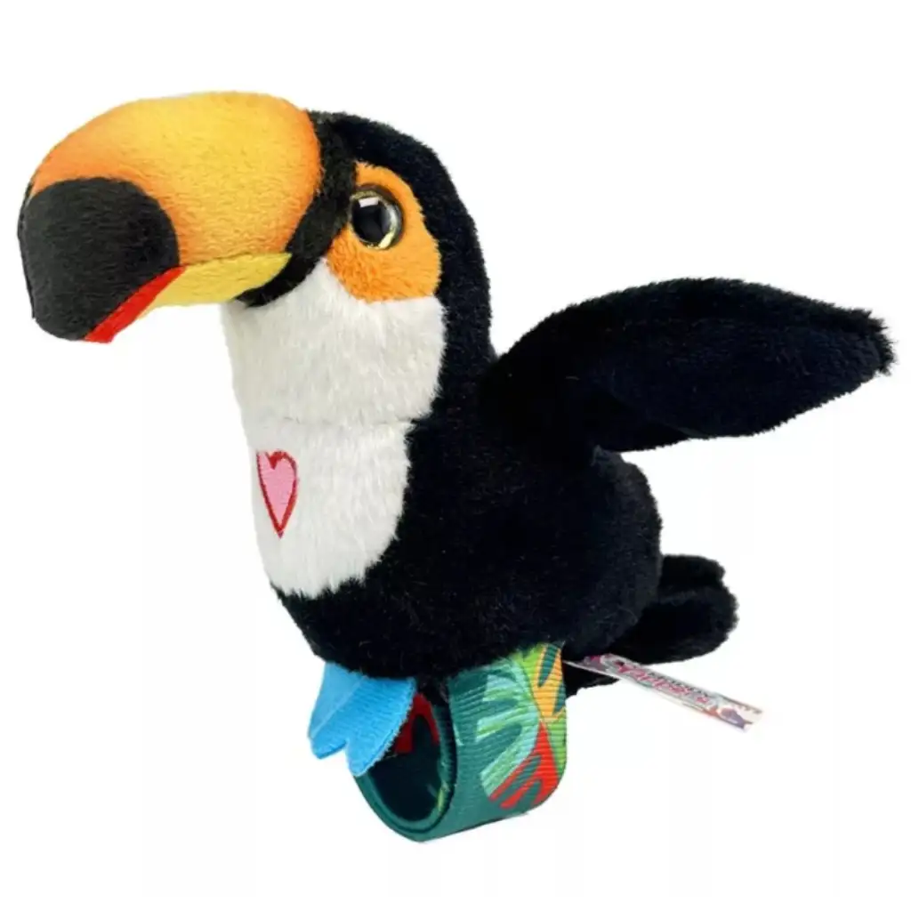 Tady je Happy Yappers! Připevni si ho na zápěstí, stiskni srdíčko a zábava může začít! Happy Yappers Tukan není jen měkká a mazlivá plyšová hračka, ale i interaktivní kamarád, který vždy přináší dětem dobrou náladu. Můžeš si s ním povídat, on opakuje, zpívá, tleská křídly a dokonce dokáže komunikovat i se svými kamarády! Díky funkci slap-náramku si děti mohou svého oblíbeného parťáka snadno připnout na zápěstí a vzít si ho kamkoli s sebou. Barevný, veselý design a roztomilý tukan zaručeně rychle získá srdce těch nejmenších, zatímco rozvíjí jejich představivost, schopnosti hraní rolí i komunikační dovednosti. Figurky Happy Yappers jen čekají, až vletí do tvého domova a přinesou veselé chvíle do každodenního života.