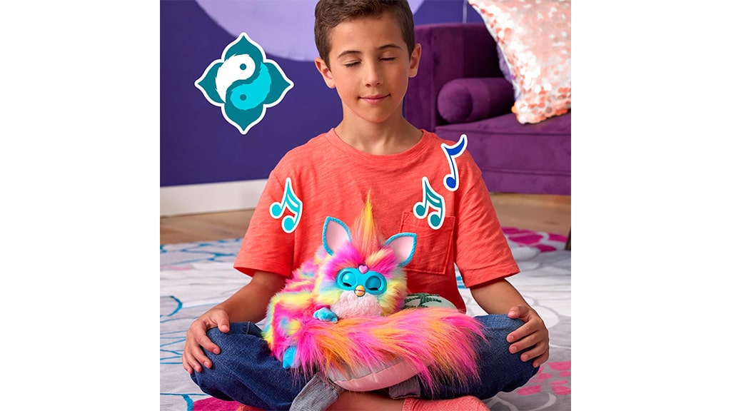 Hasbro přináší kouzlo Furby Land do dětského pokoje s pomocí DJ Furby Rainbow! Tento zcela nový plyšový Furby zvyšuje zábavu s pěti různými herními režimy, které nabízejí více než 1000 možných herních variací. Pět herních režimů je následujících: Hudba, Hádanky, Párty hry, Čas na odpočinek a Čas s přáteli. S tolika možnostmi si děti od 6 let a starší mohou vybrat své vlastní dobrodružství s Furby.Ať už vytvářejí originální melodie, paří na písničky ve furbish jazyce, objevují více než 20 her, nebo odpočívají při vedených jógových cvičeních, tento Furby umí všechno! Přepínání mezi herními režimy je jednoduché: stačí stisknout srdcovitý drahokam na Furbyho obličeji. Pomocí tlačítek na předních tlapkách Furbyho lze vybírat různé hry a také si můžete hrát s jeho svítícím bříškem, abyste viděli Furbyho vtipné reakce.