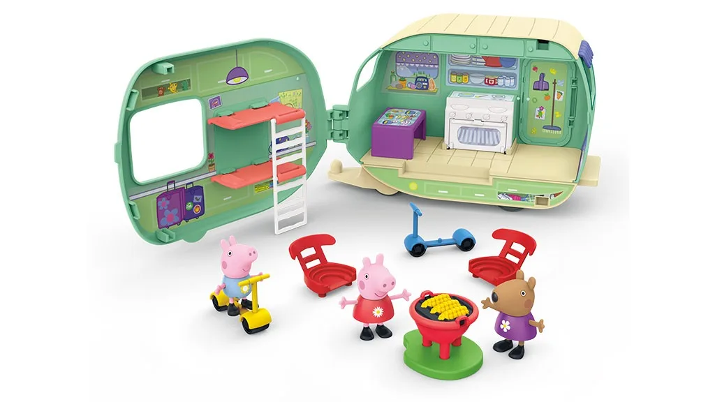 Děti si mohou vzít Peppu Pig na kempování s Peppiným karavanem, který obsahuje tři figurky, včetně Peppy, George Pig a Birgit Bear, stejně jako doplňky pro kempování. Děti se také mohou zapojit do zábavy s Peppou a jejími přáteli s Peppinou hračkou pro skupinovou hru, která obsahuje pět figurek, včetně Emily Elephant, Molly Mole, George Pig, Madame Gazelle a Peppu, stejně jako doplňky, jako jsou židle, stůl a malířský stojan.
