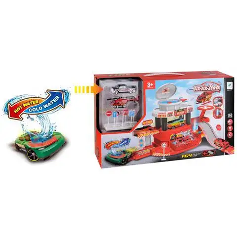 Hasičská stanice s hračkou autíčkem měnícím barvu, světlem a zvukemHasičská stanice s hračkou autíčkem měnícím barvu, světlem a zvukem