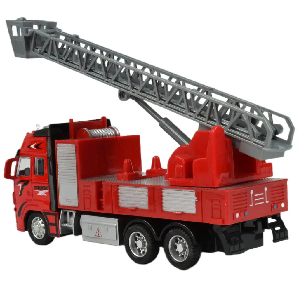 S tímto skvělým hasičským autem se děti nemusí bát požárů ve městě, protože během hry mohou na místo dorazit okamžitě s autem s žebříkem! Toto vozidlo je opravdu životní a ohromující, protože světelnými efekty činí zážitek ze hry ještě vzrušující pro nejmenší, kteří ho mohou používat v pískovišti nebo v pokoji. Auto s natahovacím pohonem rychle uhání na místo, aby mohlo začít hašení plamenů, a děti mohou hrát realistické záchranné akce.