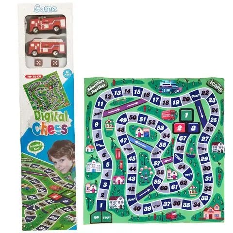 S kobercovou hrou s motivem milého malého města můžete rozšířit sbírku hraček vašeho dítěte, která skvěle poslouží i jako herní plán pro společenskou hru, protože její klikatá cesta byla očíslována a během hry se objevují různé obtíže a zjednodušení. Hru mohou hrát dva a v sadě najdete hasičská auta, která můžete použít jako figurky. Pravidla hry jsou jednoduchá, ať už hrajete s jednou nebo dvěma kostkami, musíte se na cestě posunout o tolik, kolik hodíte, ale pozor, pokud se vrátíte zpět po svahu, můžete pokračovat pouze s hody šestky. Tuto zábavnou společenskou hru si díky jednoduchým pravidlům mohou užít malí i velcí.