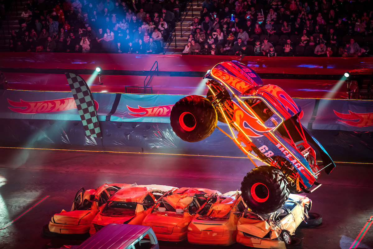 Hot Wheels Monster Trucks Live Glow Party oživuje oblíbené obří kola Hot Wheels monster trucků fanoušků, přichází Mega Wrex™, Tiger Shark™, Demo Derby™, Bone Shaker™, Bigfoot®, Gunkster™ a představuje se zbrusu nový HW 5-Alarm™, hrdinný hasičský vůz Hot Wheels Monster Trucks! Představení také zahrnují světelnou párty, impozantní laserovou show a dárkové hračky. Navíc můžeme vidět transformujícího se plivajícího ledového draka, ARCTICGONa, a úžasné skoky freestyle motokrosařů Hot Wheels Monster Trucks Live!