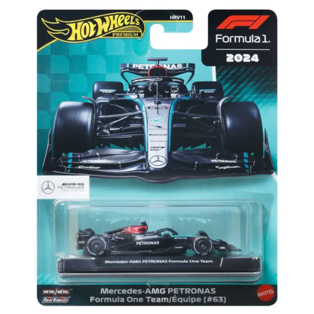 Jako součást řady Hot Wheels Premium přichází model Mercedes-AMG PETRONAS Formula 1 Team No. 63, který představuje jeden z nejznámějších závodních vozů sezóny Formule 1 2024. Charakteristické černo-tyrkysové týmové zbarvení, detailní sponzorské grafiky a pečlivě propracované aerodynamické prvky věrně odrážejí ikonický vzhled monopostů Mercedes ve Formuli 1. Dynamické proporce modelu a precizní zpracování poskytují skutečný prémiový zážitek všem fanouškům motorsportu.
