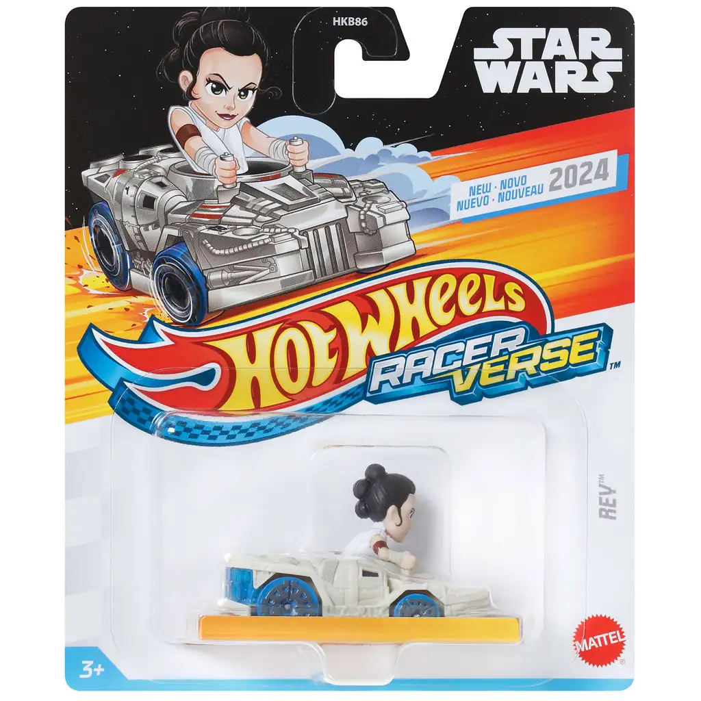 Síla je tentokrát s námi i na závodních tratích! Hot Wheels RacerVerse Rey autíčko přináší dětem – a samozřejmě i fanouškovským rodičům – opravdu silný zážitek ze světa Star Wars. Za volantem sedí Rey, kterou známe z nejnovější trilogie Star Wars, a řídí futuristické, pancéřované závodní auto v bílo-stříbrných barvách. Tvar vozidla připomíná galaktický styl a detailní zpracování je ohromující.