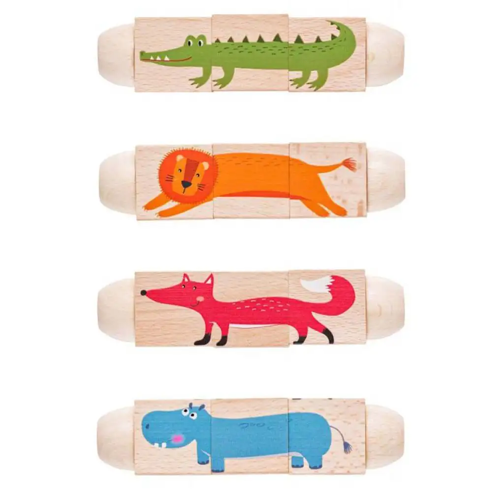 Objevte společně se svým dítětem úžasný svět zvířat s pomocí dřevěné puzzle hry Woodyland! Tato krásně zpracovaná dřevěná puzzle hra nejenže rozvíjí dětskou jemnou motoriku a logické dovednosti, ale také podněcuje jejich schopnost rozpoznávat zvířata. Puzzle zobrazuje různé zvířecí postavy, jako jsou leopard, hroch, krokodýl a liška, jejichž živé barvy podněcují zvědavost a pomáhají s rozpoznáváním barev. Díky odolnému dřevěnému materiálu hra poskytuje dlouhodobou zábavu, zatímco děti se učí radost z párování tvarů a barev. Perfektní velikost kostek zajišťuje, že malé ruce je mohou snadno chytit, takže zážitek z hry je zaručeně bezpečný a pohodlný.