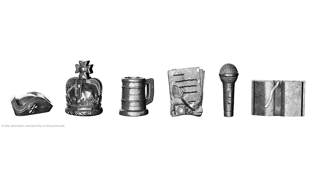 Tato speciální edice Monopoly byla vytvořena k oslavě 10. výročí muzikálu, ve které zaznívají ikonické písně jako „My Shot“, „The Schuyler Sisters“ a „You’ll Be Back“.