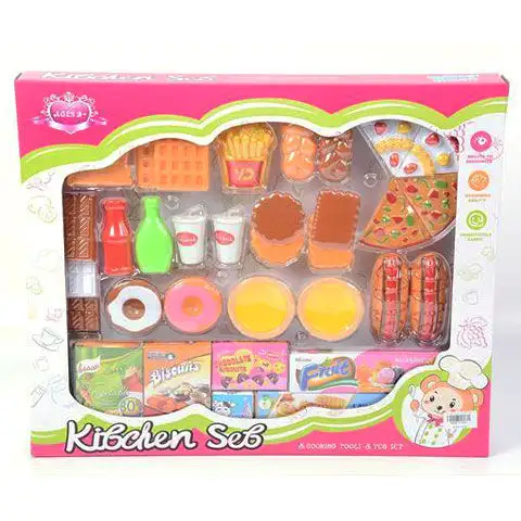 Přinesli jsme nyní speciální sadu pro tvou malou dceru, která ji jistě potěší, protože v této sadě je vše, co by mohlo být potřeba v kuchyni jako potravina. V sadě se nachází několik sladkostí, které mají obchodní balení, ale jsou zde i vafle, pizza, dort a různé sušenky. Kromě toho zde najdeme i smažené brambory a různé omáčky, takže tato sada může být dokonalým doplňkem její malé kuchyně, kde už jen stačí mít talíře a zábava může začít.