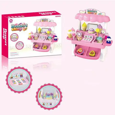 Děti rády hrají hry, ve kterých si mohou zahrát role zákazníka a prodavače, a pro to je tento roztomilý stánek s dezerty skvělou volbou. Sada obsahuje kouzelný cukrářský stánek v růžové barvě, který má opravdu dívčí vzhled, nad nímž je roztáhnutý roztomilý slunečník. Skvělost hry je dána širokou nabídkou, která zahrnuje spoustu barevných zmrzlin, lízátek a atraktivních cukrovinek. Díky této sadě si děti mohou skvěle vyzkoušet proces nákupu a prodeje.