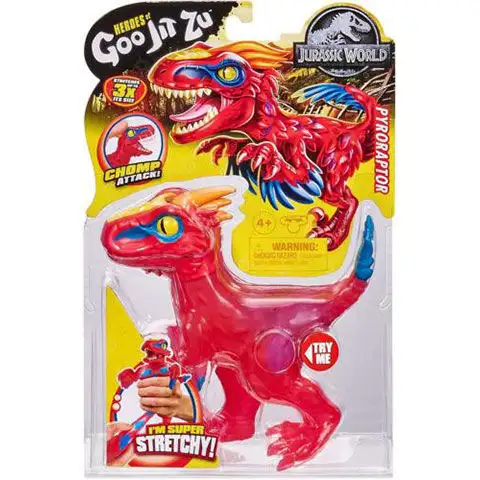 Jedním z největších dinosaurů ve filmech Jurassic World je živě červený Pyroraptor, který díky své úžasné rychlosti je sám o sobě strašlivým protivníkem, ale jeho pružné tělo ho dělá ještě zvláštnějším. Hrdinové hraček Goo Jit Zu se díky svému detailnímu zpracování dostávají do srdcí dětí stejně jako díky svým zvláštním super schopnostem, díky kterým jsou skutečně jako superhrdinové z komiksů, takže je zaručeno, že pro ně můžete vymyslet vzrušující a jedinečné příběhy. V naší nabídce najdete i další hrdiny Goo Jit Zu.