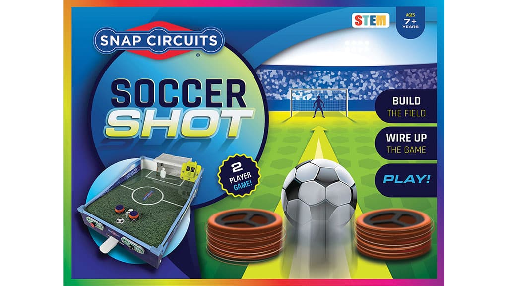 Snap Circuits Soccer Shot je vzrušující dvouhráčová výzva, která proměňuje fotbalové penalty. Děti nejprve postaví hru a poté se ponoří do akce: jeden hráč kope, zatímco druhý brání jako brankář. První, kdo vstřelí devět gólů, vyhrává. Tato hra není jen zábavná, ale také rozvíjí zručnost a strategické myšlení dětí, zatímco posiluje jejich lásku ke sportu.