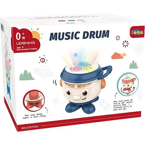 Tato bubínková hračka nabízí nejmenším dětem příjemné chvíle a zaručeně vykouzlí úsměv na tváři dětí. Buben s jeho živými barvami, veselou tváří a malými nožičkami jistě snadno vzbudí zvědavost dětí, a díky vnitřní elektronice a baterii je schopen udržet pozornost malých na delší dobu světly a zvuky. Objevování hračky a její různé možnosti skvěle rozvíjí motorické a audiovizuální dovednosti dětí.