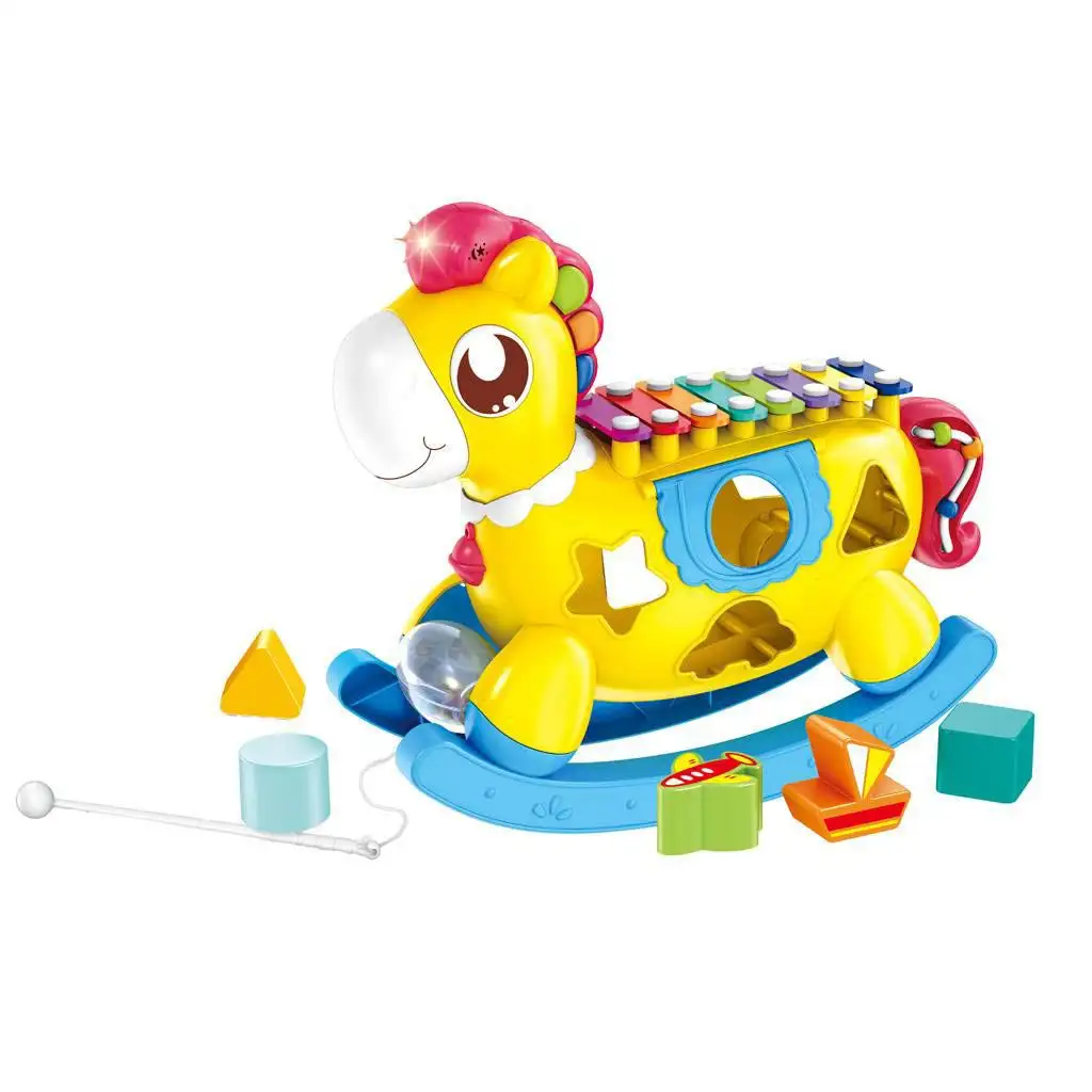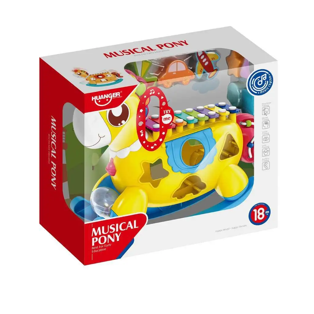Objevte tohoto roztomilého hudebního poníka, kterého vaše dítě bude milovat! S touto okouzlující, taženou hračkou mohou malí objevovat barvy, tvary a melodie, zatímco se zábavně a hravě rozvíjejí své dovednosti. Na těle poníka se nachází pět různých tvarů - každý tvar je různé barvy a provedení -, které pomáhají dětem pochopit rozdíly mezi tvary a barvami, zatímco rozvíjejí své jemné motorické dovednosti a koordinační schopnosti. Táhněte za poníkův provaz a sledujte, jak světla svítí a různé melodie se ozývají. Různé zvuky a světelné efekty nejen upoutají pozornost dětí, ale také pomáhají rozvíjet sluch a zrak. Hudební poník na rozvoj dovedností je odolný, vyrobený z kvalitních materiálů, takže děti s ním mohou bezpečně hrát. Ať už doma nebo na cestách, tato hračka se jistě stane oblíbenou a bude vaše dítě dlouhé hodiny zabavovat.