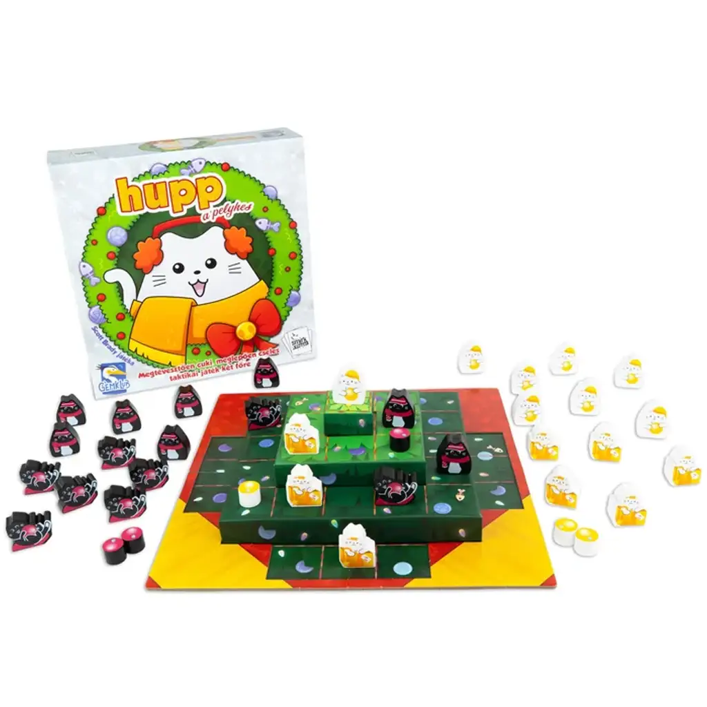 Zrádně roztomilý a překvapivě promyšlený taktický souboj pro dva hráče – to je Hupp, plyšový vánoční strom, na kterém se mezi ozdobami tísní i vychytralé kočky! Na první pohled je hra okouzlující – kdo by neměl rád kočičí figurky ve vánočních svetrech, které drží dárky a rozmisťují se kolem stromu? Ale nenechte se zmást jejich chlupatým vzhledem: tato hra je skutečný hlavolam, kde záleží na každém tahu!