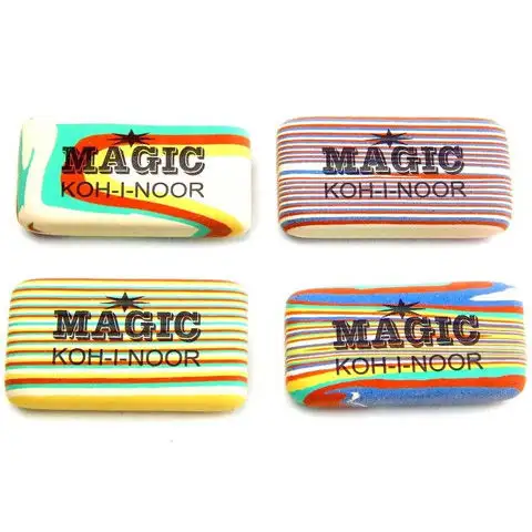 Klasické gumy KOH-I-NOOR s motivem slona jsou již všeobecně známé. Tato speciální guma složená z několika komponent dále zvyšuje pověst KOH-I-NOOR. Tři různé materiály nejenže vytvořily na gumě jedinečný vzor, ale také jí propůjčily vynikající kvalitu. Guma KOH-I-NOOR Magic je vynikající volbou pro každého, kdo hodně pracuje s tužkou, protože tato guma efektivně odstraňuje stopy grafitu i barevných tužek, aniž by poškodila papír.