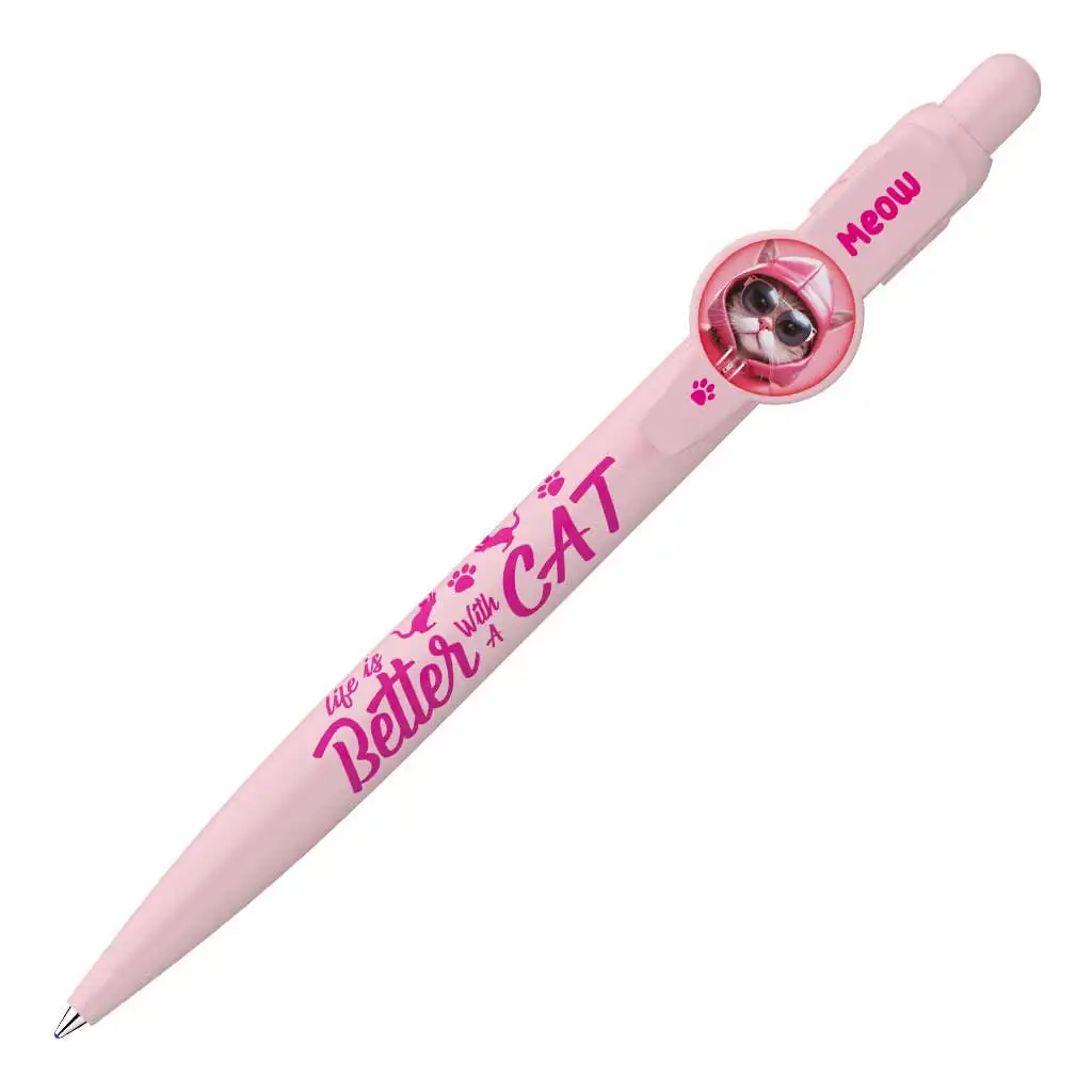 ICO: Kuličkové pero s kočkou, pastelově růžovéICO: Kuličkové pero s kočkou, pastelově růžové