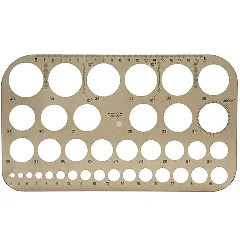 S tímto speciálním šablonem lze vytvořit kruhové tvary s různými průměry, což může být velkou pomocí při vytváření technických výkresů. Kouřově zbarvená plastová šablona je velkou pomocí pro dospělé na rýsovacím prkně, ale děti ji mohou používat i pro své kresby jako zajímavost. Speciální šablona je skvěle použitelná díky svému měřítku.