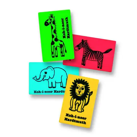 Tyto jsou nové generace gum od KOH-I-NOOR, gumy s motivem safari zvířat. Základní barva gumy je také jiná, téměř fluoreskující. Navzdory barevnosti gumuje stejně kvalitně jako tradiční gumy KOH-I-NOOR. Guma s motivem safari zvířat je dobrá volba pro gumování pro ty menší, protože právě oni touží nejvíce po barvách a tvarech.
