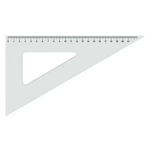 ICO: pravítko ve tvaru pravoúhlého trojúhelníku s úhlem 60 stupňů průhledné.